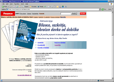 | You are here: Home » The Marketing Diary » Real-life Marketing Experience » Integrated E-book Marketing Strategies: The Finance Case Integrated E-book Marketing Strategies: The Finance Case E-books are everywhere and extremely hard to market, largely due to huge market saturation. Success requires integrating different marketing tools, including offline. Luckly we didn't have the saturation problem when we started publishing e-books at the business daily Finance in Slovenia beggining of this year, since we were practically building the e-book market (there were e-books before, but none were comercially successful). But still, instead of just focusing on one marketing tool, we tried using a more complex combination. The first e-book that we published (the subject was accounting) sold 700 copies in the first 2 weeks, and that on a market with a mere 2.000.000 population. It then went on and became the absolute Slovenian e-book bestseller, selling more than 1.000 copies, which is alot even for print books here. The sales mini-site achieved a total 14% conversion from visitors to buyers. What's interesting about this case are the sales sources (the sales sources that generated sales): Racunovodja.com: 28% [an affiliate marketing deal; 25% commission; a web site focused on accountants] The thing that surprised me the most was the print campaign: based on our statistics, only 3% of the people that bought the e-book came to the sales mini-site from print ads in the business daily. Unfortunatelly we cannot precisely determine whether print advertising also had an indirect effect, but we I'm predicting that it had. It's also interesting to know that the first 540 customers also received a special bonus: a print cover for the e-book. They could simply print the e-book and then insert the material in to the cover and bind it. While most customers e-mailed us to see where their cover is (the printing took a little more time than anticipated), I believe that the actual cover didn't have much impact on sales, since the e-book was still selling with the same success when we stopped offering it. After reaching 540 customers we also increased the price for app. 50%. The change again didn't have a negative impact on our sales. Oh, and there was something else interesting as well: our customers could simply download the e-book after "ordering" it and then pay a week or two later, after receiving the invoice from us. Yes, we actually let them have it before paying for it --> more than 95% actually paid! The Sales Mini-Site Screenshot